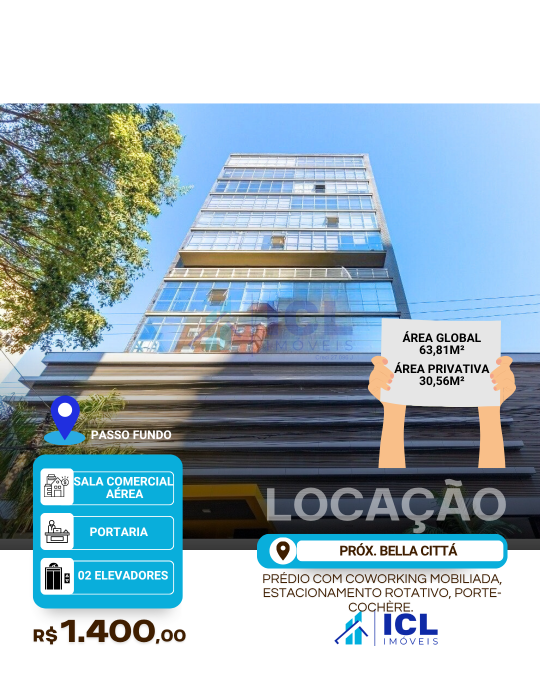 R$ 1.400,00ALUGA - Sala Comercial Aérea, frente ao Bella Cittá, com área aproximada de 80m², 02 lavabos, fr...