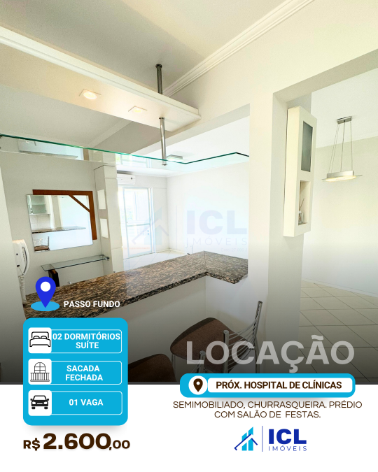 R$ 2.600,00ALUGA - Apto 01 dormitório de frente com sacada, próximo a Pronto Clínica e Faculdade Anhanguera,...